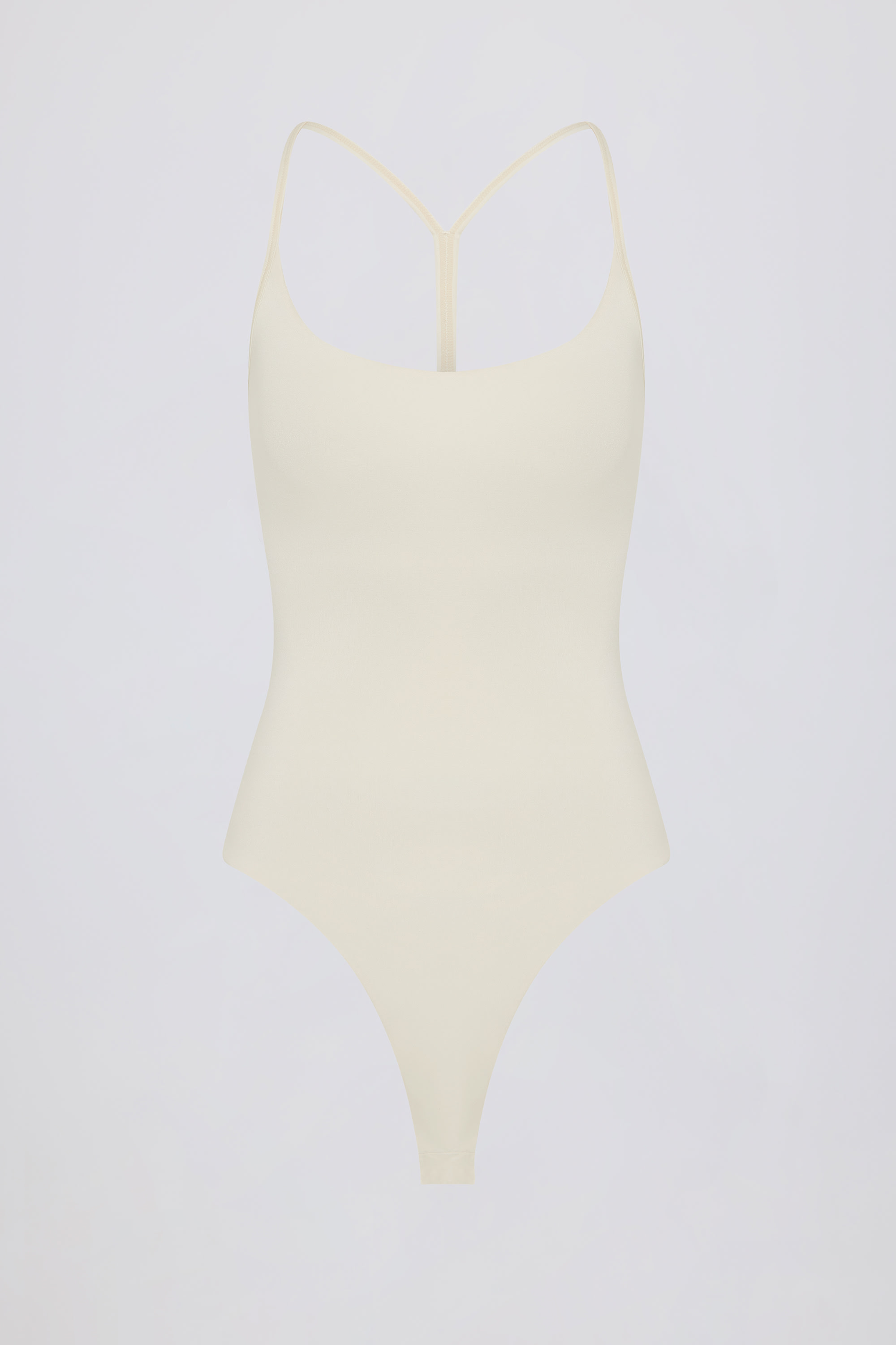 Styling essentials. This bodysuit is designed as the perfect base for sunrise walks or warm-weather brunches, crafted from our silky soft and stretchy jersey for a sleek, smoothing and figure-hugging fit. Framed with a universally flattering scoop neck, it features a cut-out back with racerback straps and thong-back coverage for seamless layering under your favourite shorts or joggers.