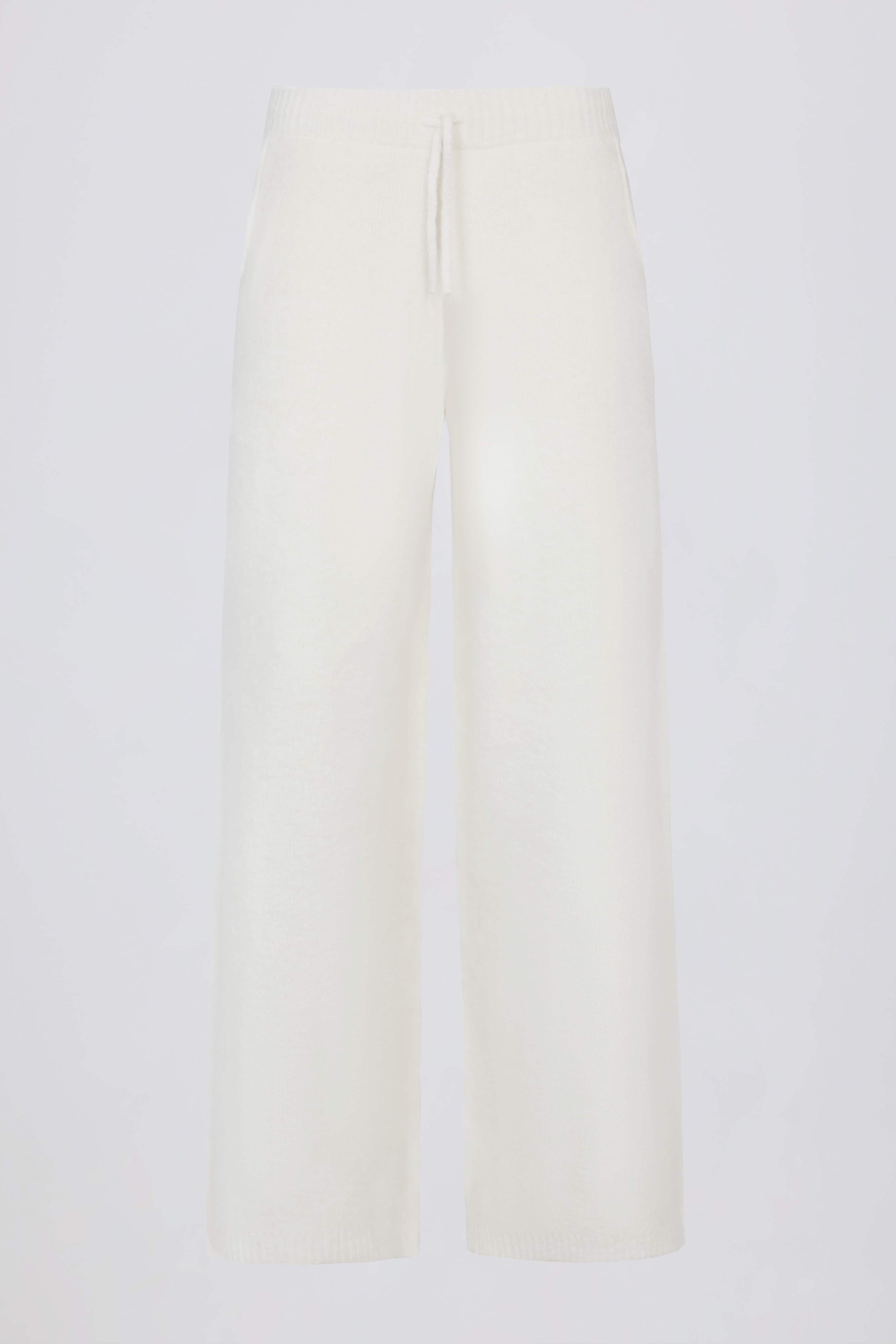 Knit Mid-Rise Wide-Leg Joggers in Ivory