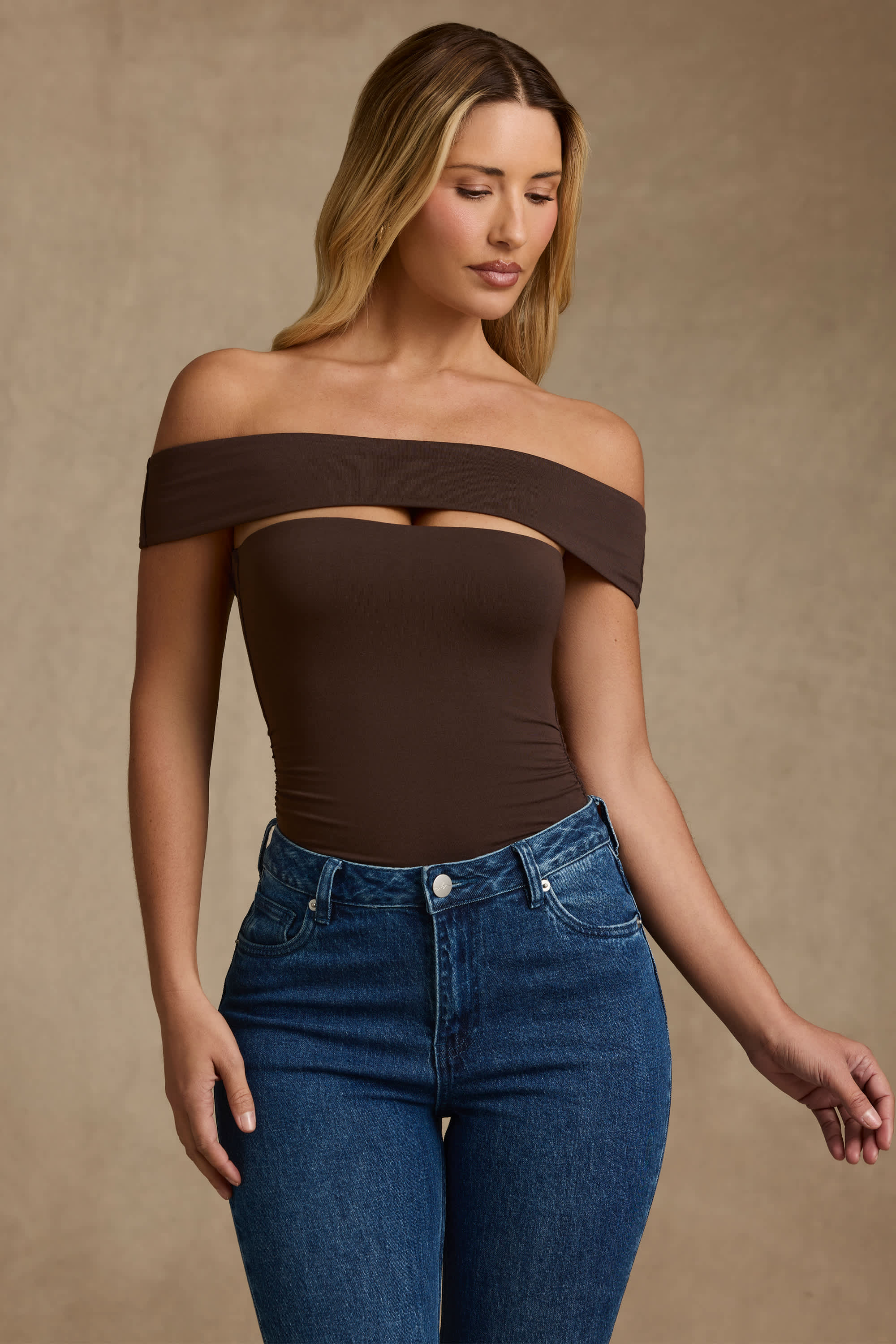Modal Cut-Out Off-Shoulder Bodysuit in Chocolate Brown