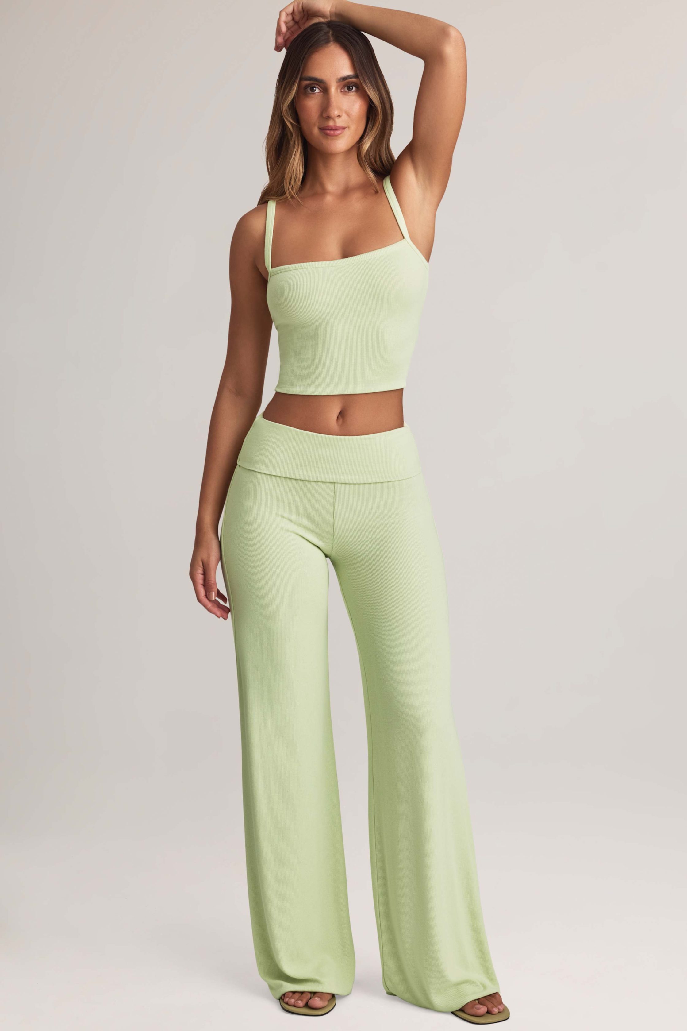 Modal Foldover Wide-Leg Trousers in Sage Green
