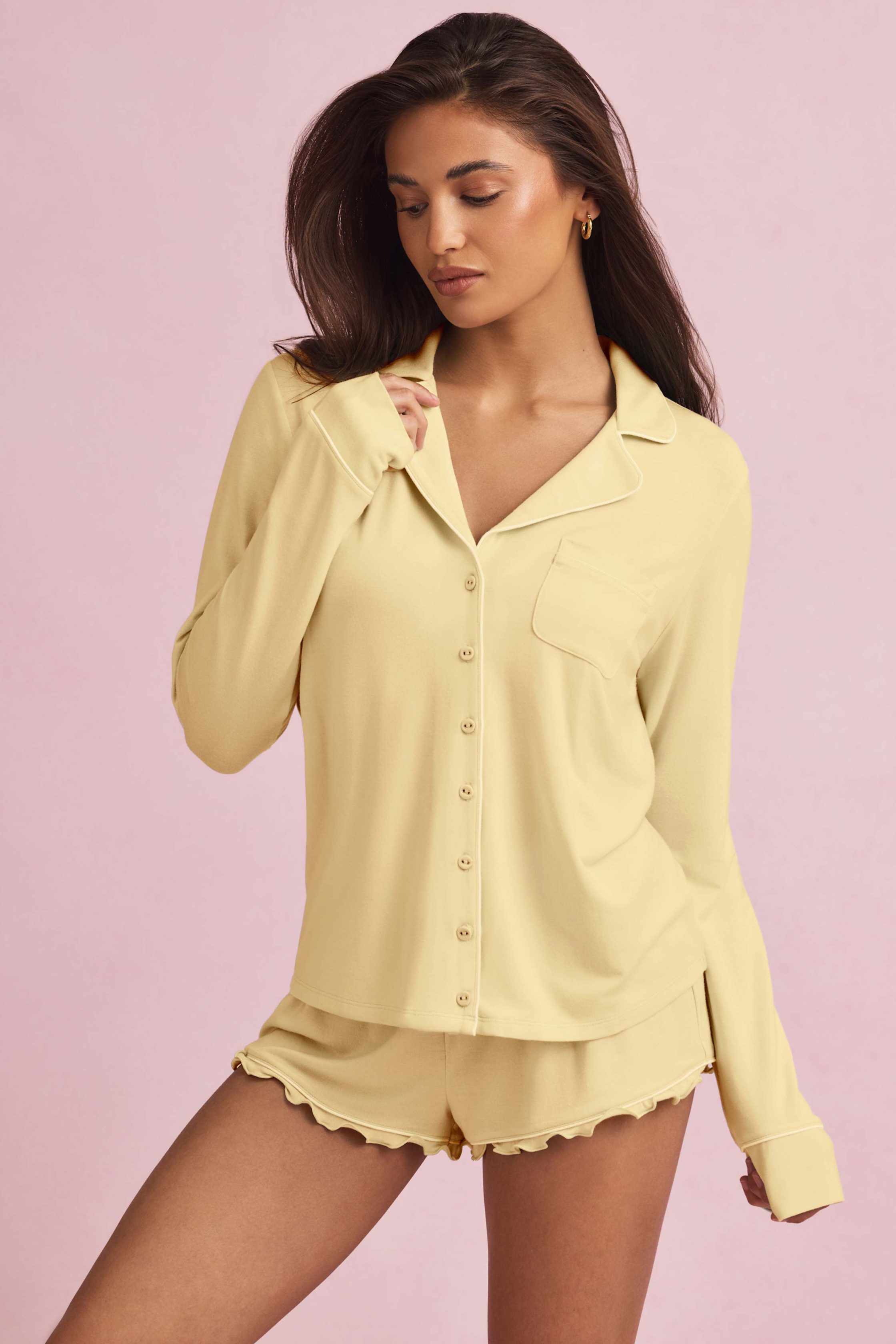 Modal Long-Sleeve Pyjama Top in Pastel Yellow