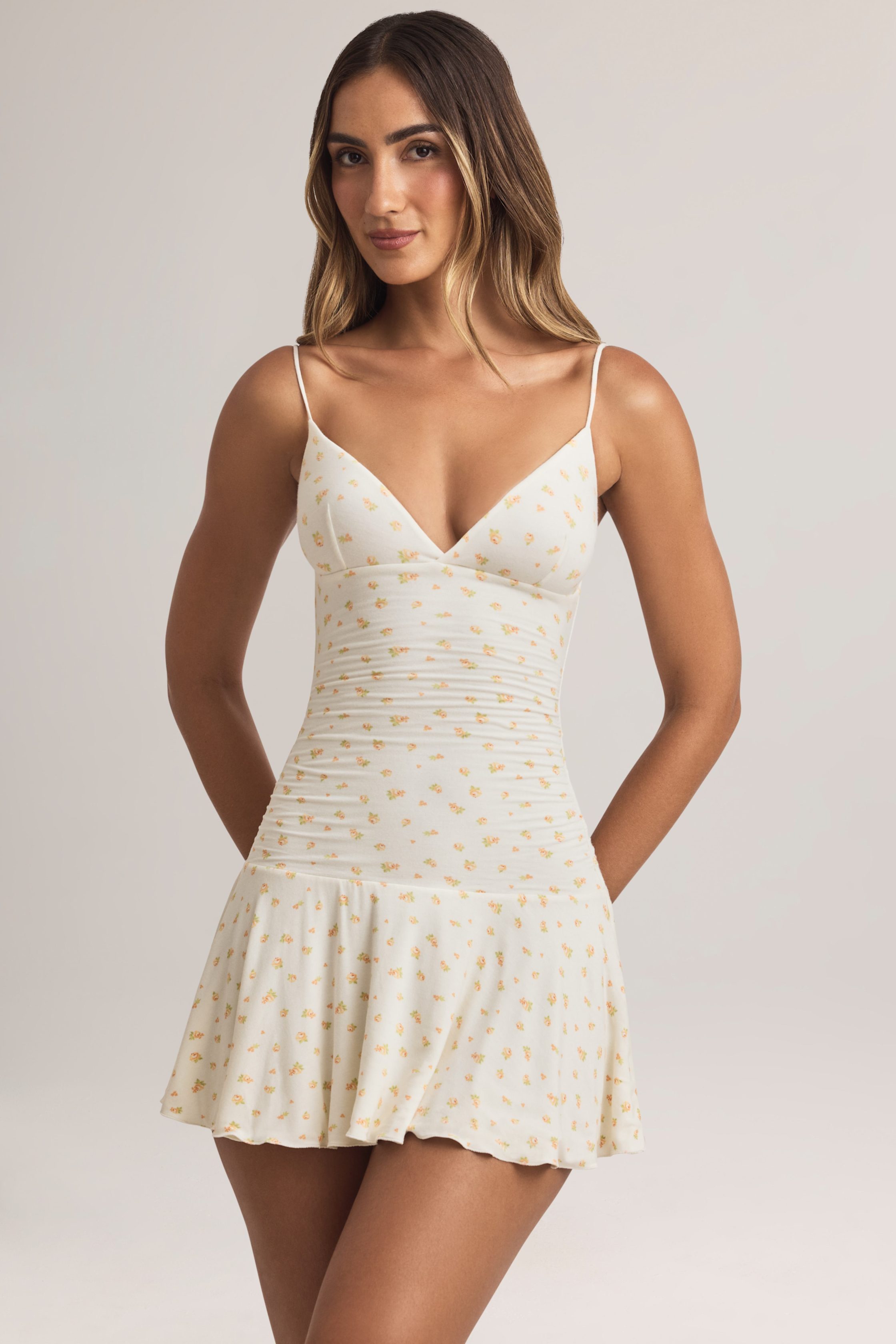Modal Ruched A-Line Mini Dress in Floral Print