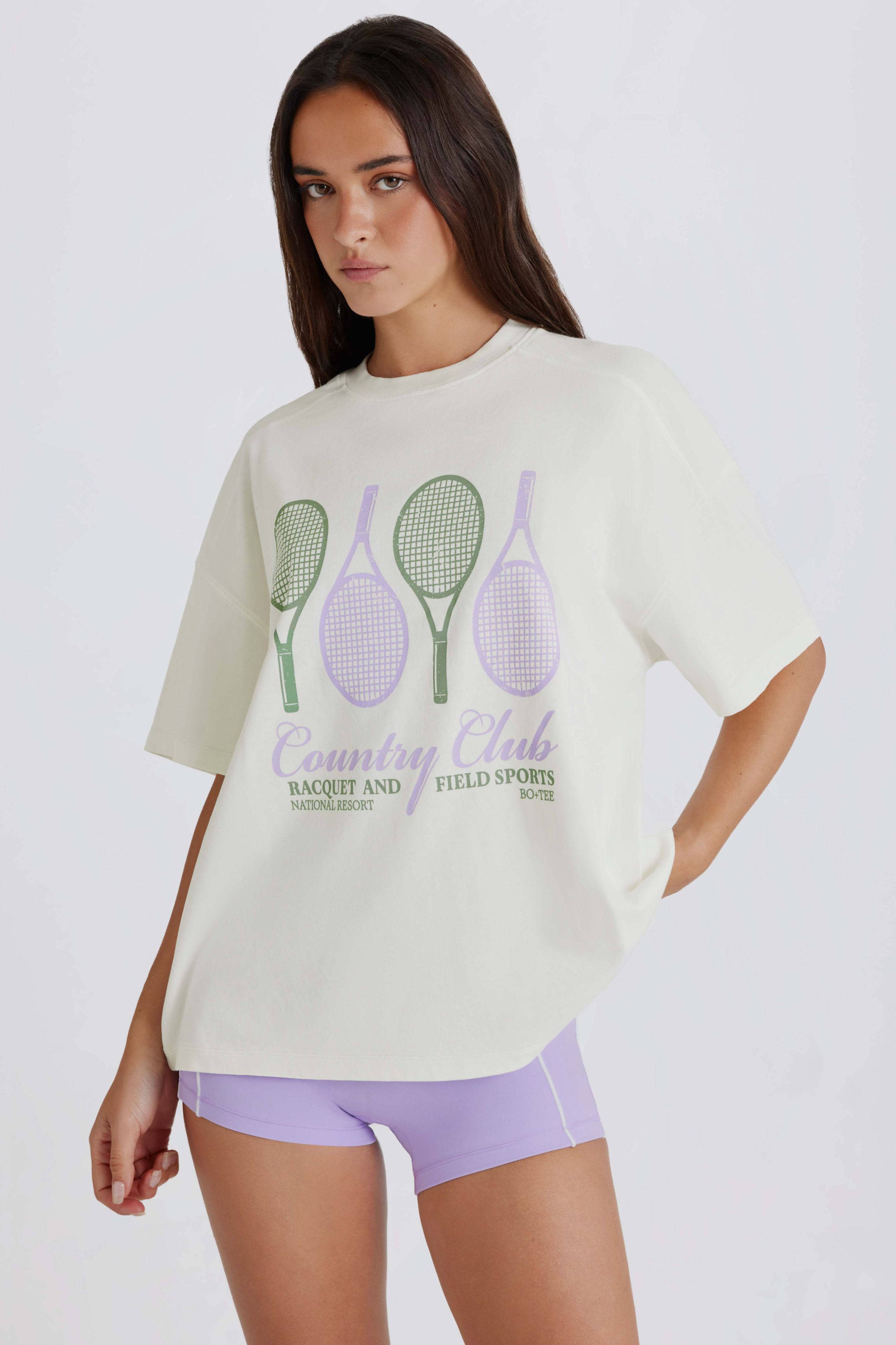 Bringing the nostalgic country club aesthetic to life, this T-shirt is detailed with a playful graphic at the front in colours that perfectly complement the rest of the collection. It’s crafted from lightweight and breathable cotton jersey to an oversized silhouette with dropped shoulders. We’re wearing ours with mini shorts for post-match coffee dates.