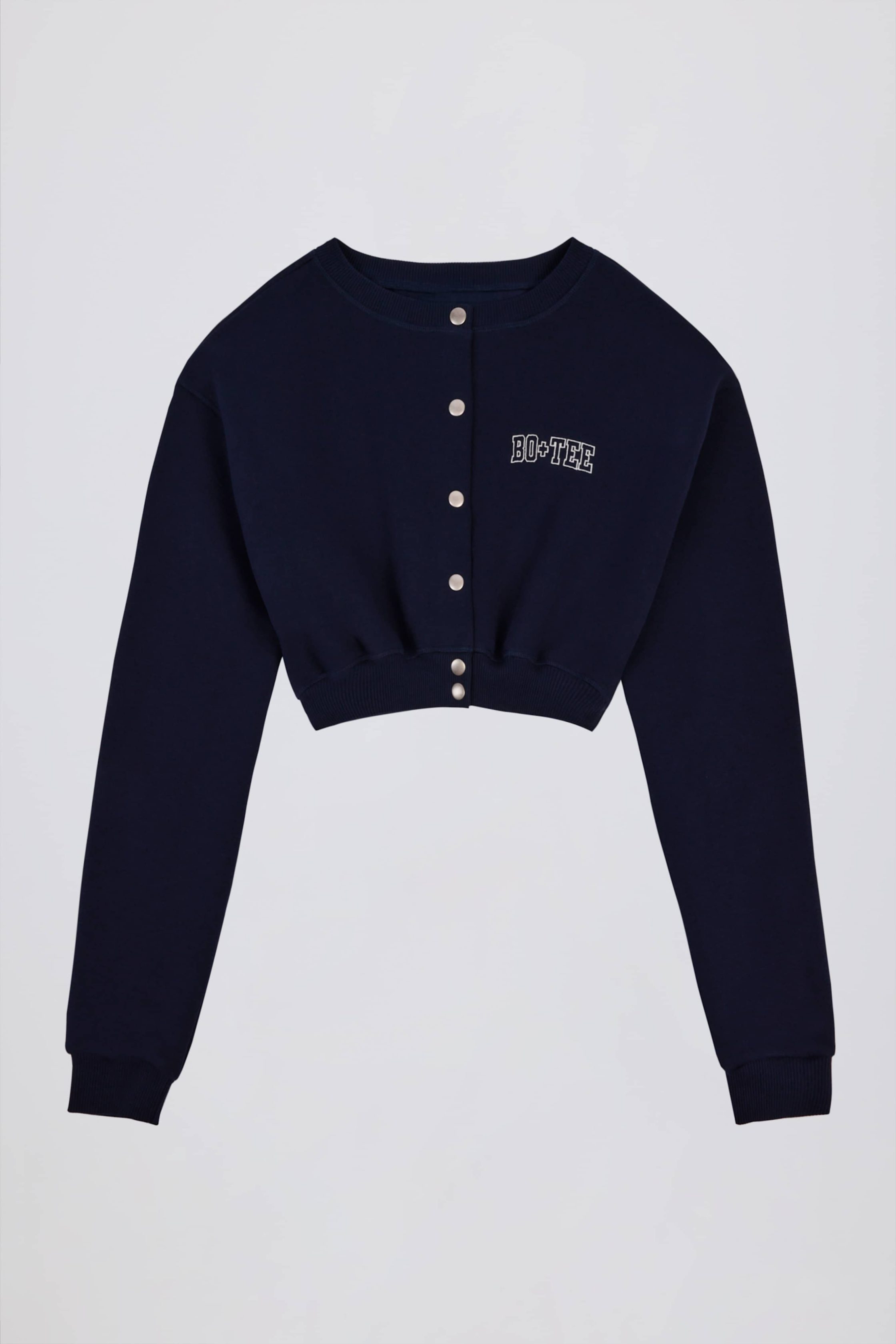Premium Brushed Jersey Button-Up Cropped Cardigan in Classic Navy