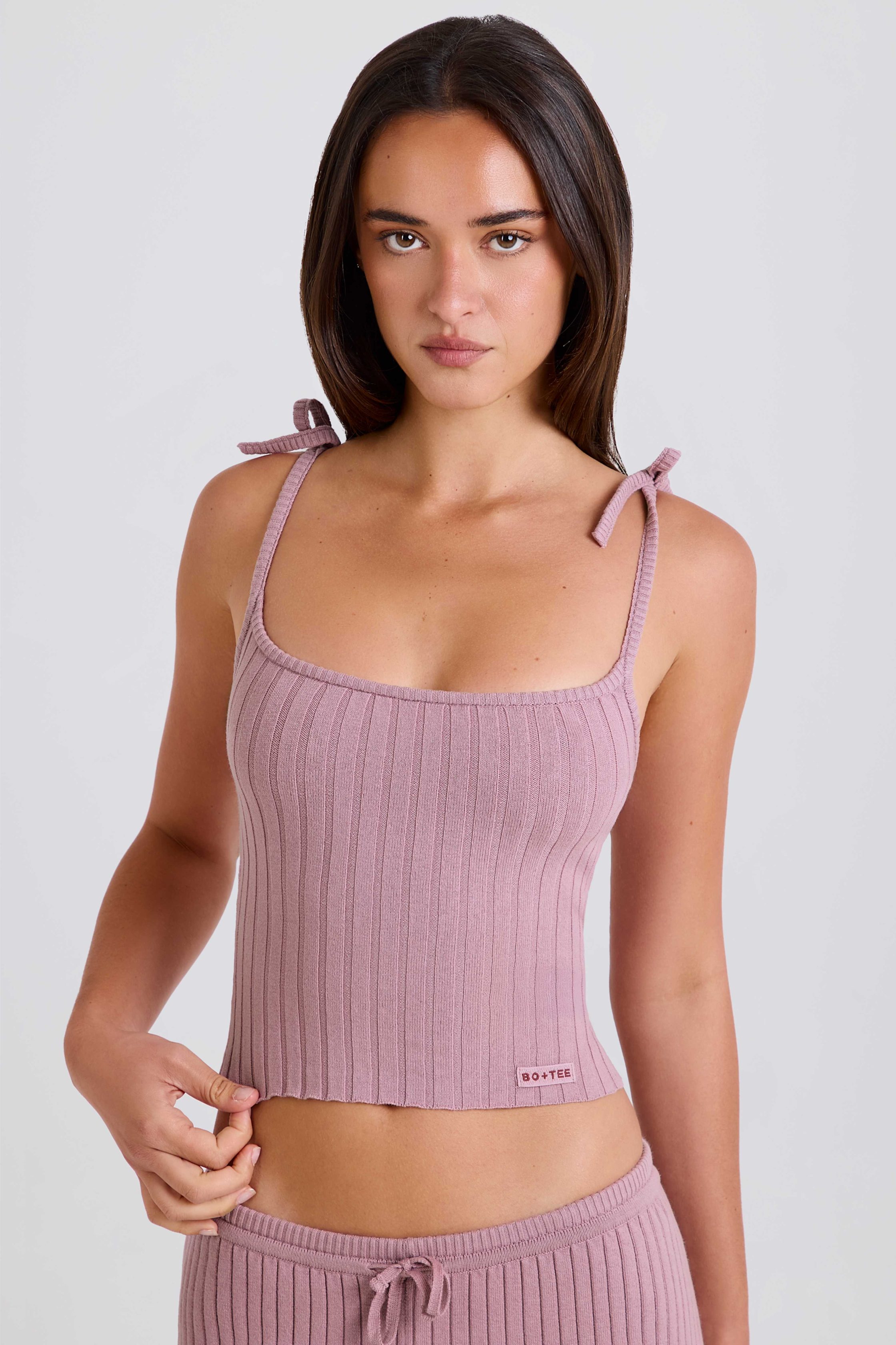 When rest days and post-workout plans call for comfort, you’ll want to reach for this top. Made from a lightly stretchy cotton blend with a soft, ribbed-knit texture, it’s designed to a classic camisole silhouette with tie straps that can be adjusted for your perfect fit every time.
