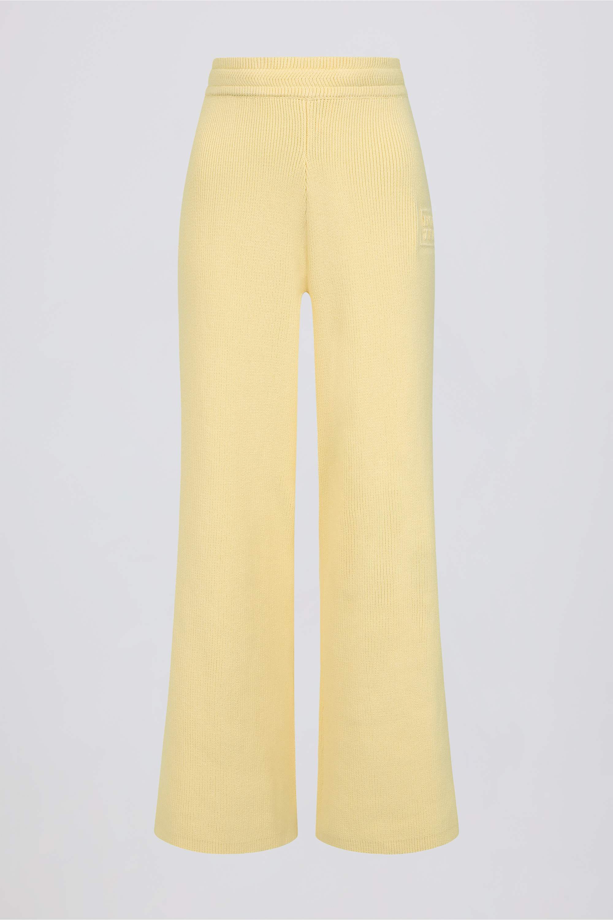 Ribbed Knit Wide-Leg Joggers in Lemon