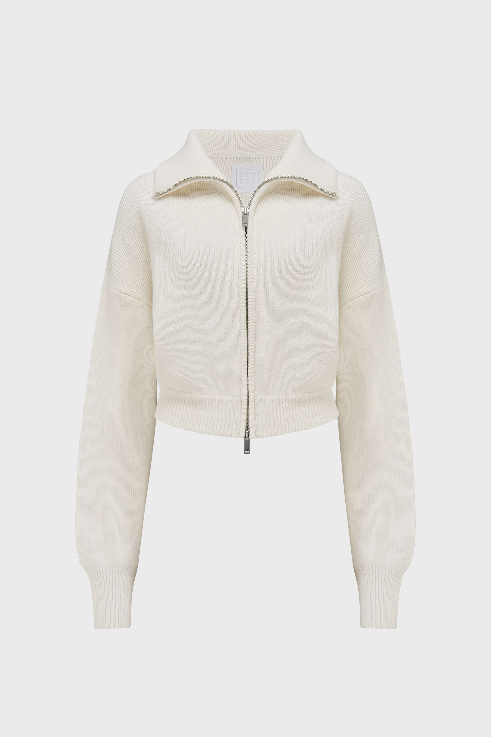 Perfect layers. Designed for mix-and-match styling with separates from the collection, this sweatshirt is crafted from a cotton-blend fabric with a textured ribbed-knit finish. It’s framed by an oversized collar, long cuffed sleeves, and dropped shoulders, creating a perfectly relaxed silhouette. The embossed Bo+Tee logo at the back adds a subtle signature finishing touch.
