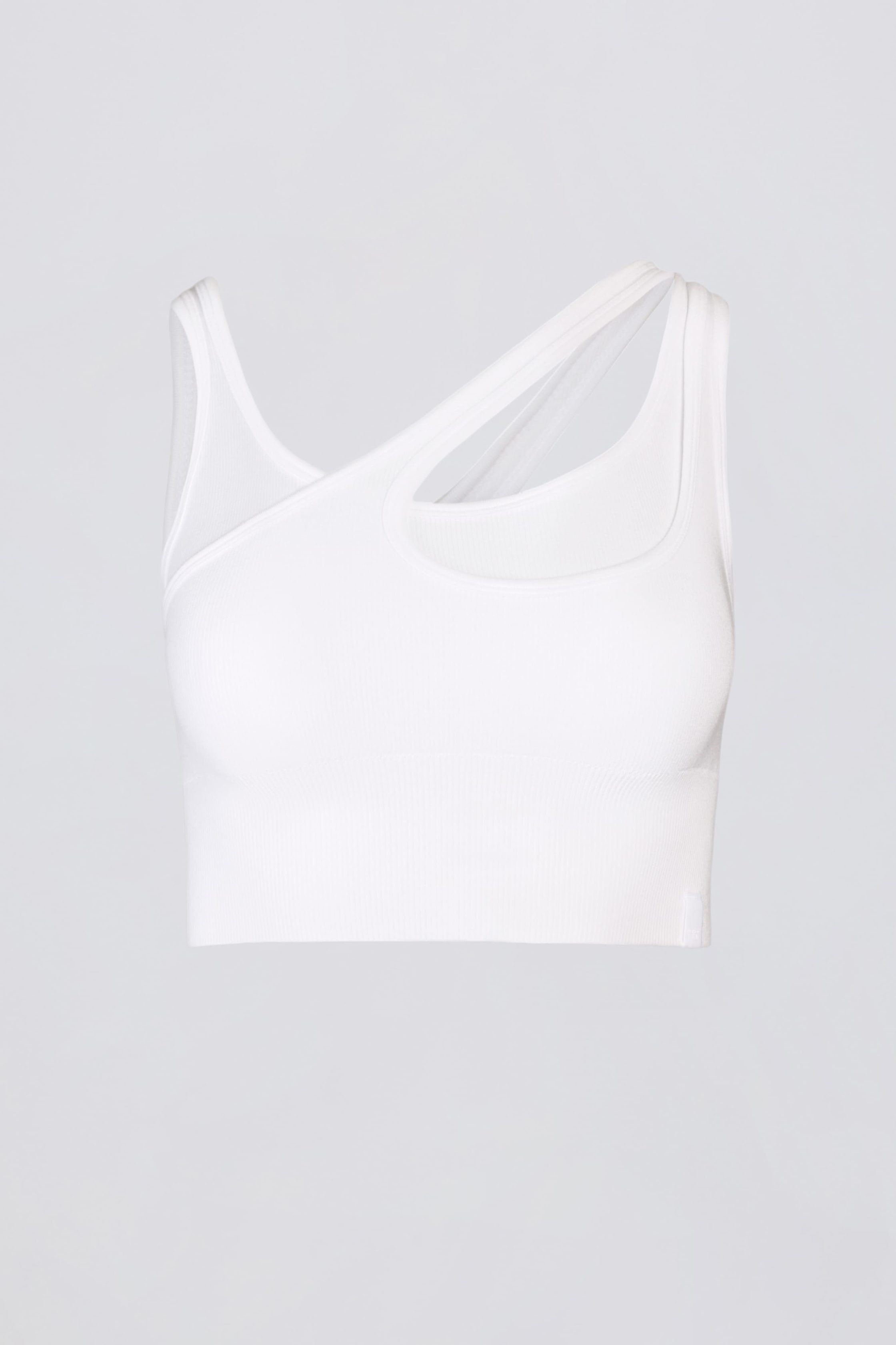 Seamless Soft Rib Asymmetric Sports Bra in White