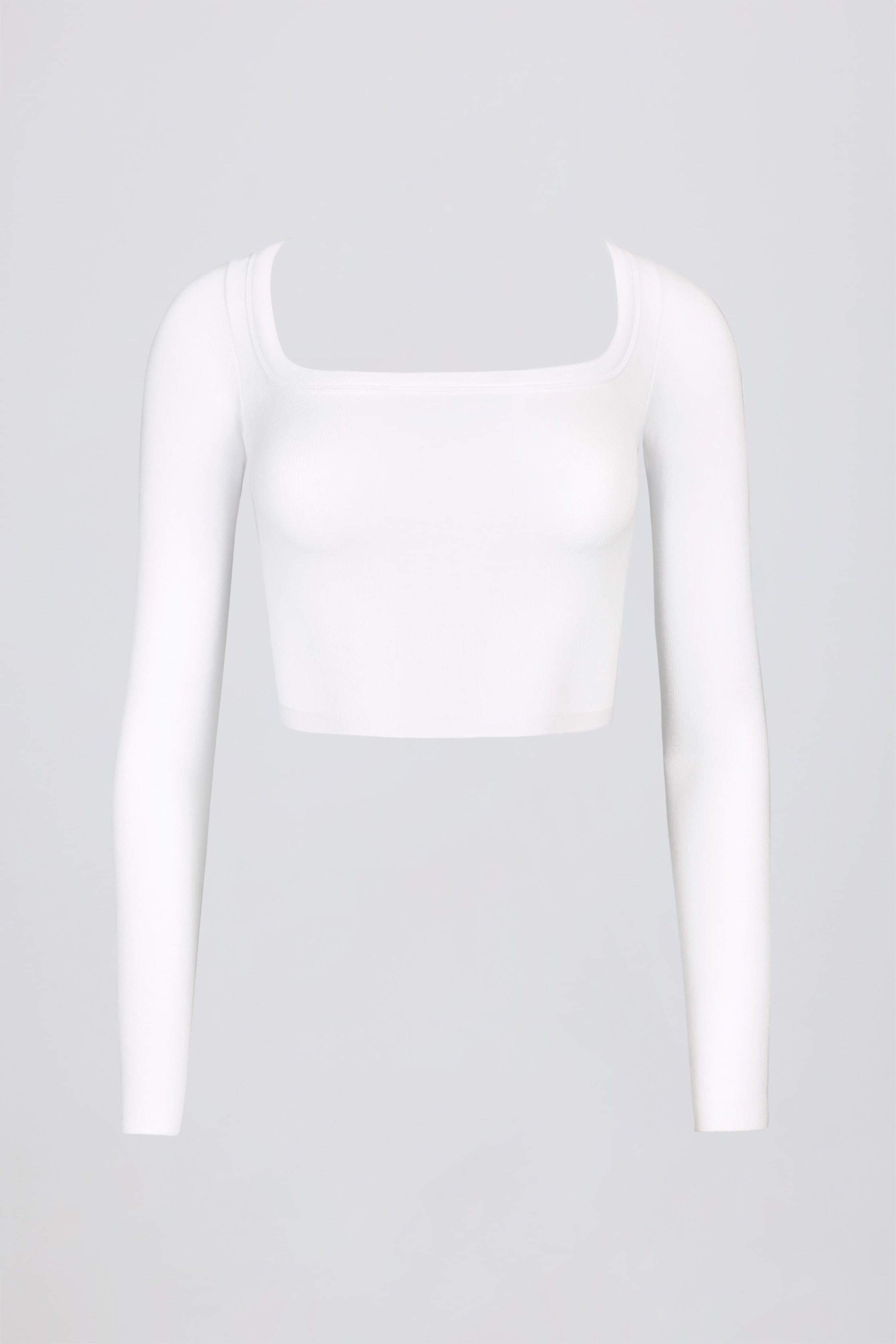 Off-duty styling made easy. Imagined in neutrals that pair back perfectly with the rest of the collection, this top is crafted from our seamless ribbed Modal fabric that’s soft, breathable and lightweight. It’s cut to a cropped silhouette with a cut-out back, fitted long sleeves and a universally flattering square neckline.