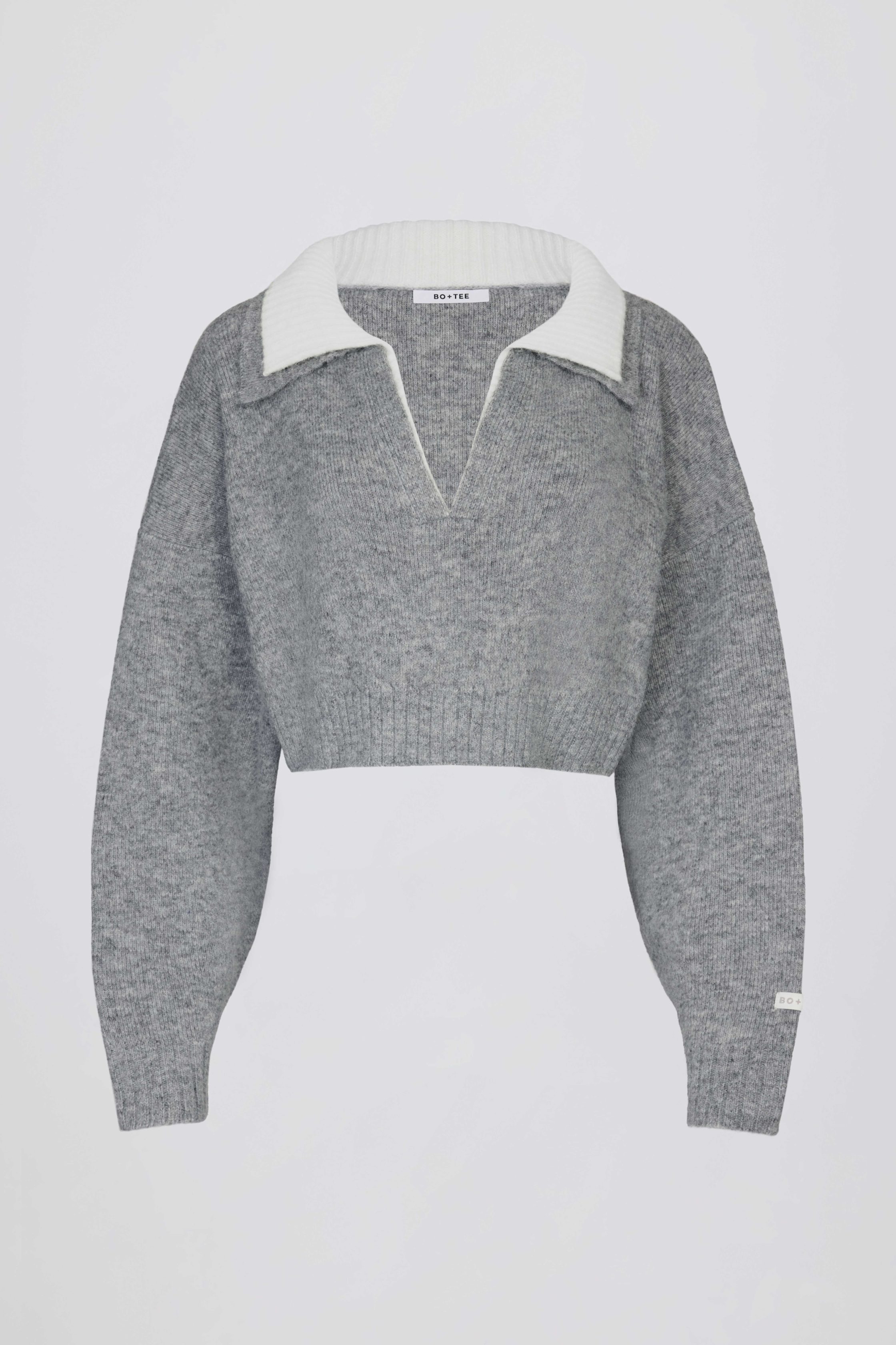 Soft Knit Layered Collar Cropped Jumper in Grey
