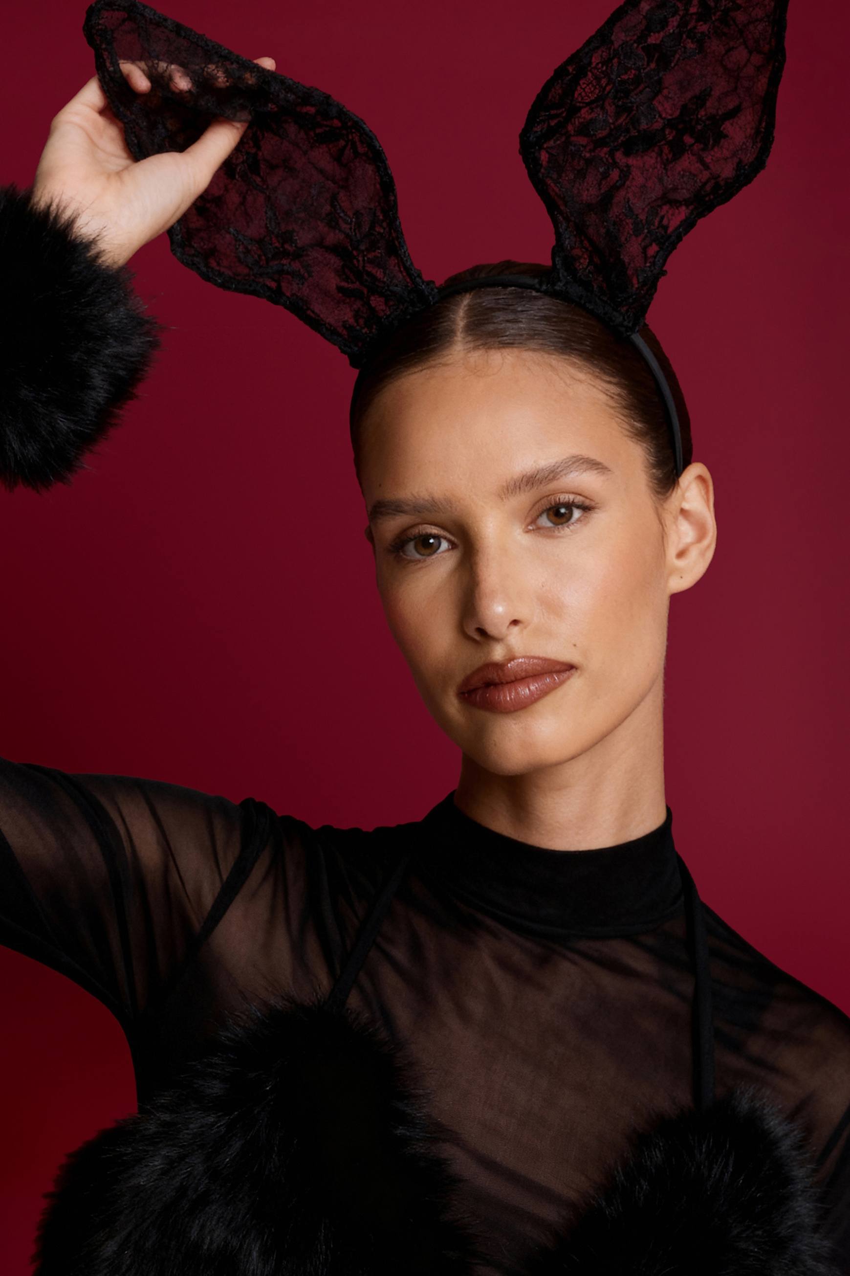 The perfect finishing touch for your Halloween look, the Bunny headband is set on a premium satin-covered headband for enhanced comfort all night long. The ears are crafted from semi-sheer floral lace and can be bent to your preferred shape.